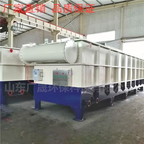 石膏加工废水处理设备设计了新颖独特的溶气系统,通过溶气和释放系统在水中产生大量的微细气泡,使其粘附于废水中密度与水接近的固体或液体微粒上,造成整体密度小于水的状态,并依靠浮力使其上升至水面,达到去除SS和CODcr的目的。