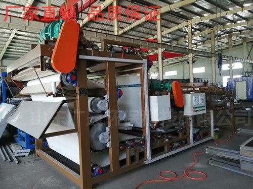 沙场压泥机配置齐全: 尾矿矿渣脱水带式压滤机包括不锈钢机架、重力脱水段、压榨段、泥耙、驱动装置、滤带清洗装置,滤带张紧装置、滤带纠偏系统、滤液收集盘及排水盘,内部电线及管道等,全部使用耐磨