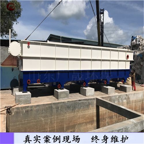 钢渣废水处理设备利用溶气在水中产生大量的微细气泡,使空气以高度分散的微小气泡形式附着于悬浮物上,造成密度小于水的状态,利用浮力原理使其浮于水面,从而实现固-液分离。