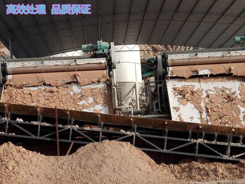 在重力的作用下自由水透过滤网背面而渗出分离,形成不流动状态的泥浆,达到压榨脱水区实施较大压力条件,然后随着网带的移动而夹持在上下两条网带之间,经过具有可调张紧力的过滤带及直径逐渐递减的转辊和对压辊,实施连续增加的缓慢的对辊挤压力、剪切力作用。