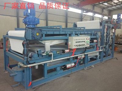 污泥经输送泵进入动(静)态混合器,与同时加入的浓度为0.05~0.1%阴(阳)离 子絮凝剂溶液相混合并充分反应后,渣(泥)浆中的微小固体颗粒(或悬浮物)聚凝成体积较大的絮状团块,物料间的结合水及表面水被分离成自由水,当物料被输 送铺展到加长的重力预脱水区(或带式污泥脱水机上)的滤网上,在重力的作用下自由水透过滤网背面而渗出分离,形成不流动状态的污泥,达到压榨脱水区实施压 力条件,然后随着网带的移动而夹持在上下两条网带之间,经过具有可调张紧力的过滤带及直径逐渐递减的转辊和对压辊,实施连续增加的缓慢的对辊挤压力、剪切 力作用,