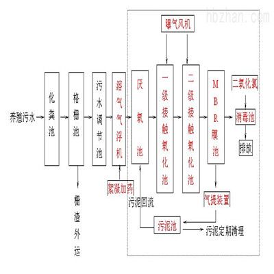 经格栅井去除水中废渣、纸屑、纤维等固体悬浮物,在调节池内经泵提升至厌氧池,在厌氧池段异养菌将污水中可溶性有机物水解为有机酸,使大分子有机物分解为小分子有机物,同时将蛋白质、脂肪等污染物进行氨化。在好氧池段存在好氧微生物及硝化菌,其中好氧微生物将有机物分解成CO2和H2O;在充足供氧条件下,硝化菌的硝化作用将NH3-N氧化为NO3-,通过回流控制返回至A级生物池,在缺氧条件下,异养菌的反硝化作用将NO3-还原为分子态氮,接触氧化池出水自流进入沉淀池进行沉淀,沉淀池出水进入过消毒池进行二氧化氯消毒,消毒出水达标排放。污泥池的污泥一部分回流至A级生物池,剩余污泥定期外运处。