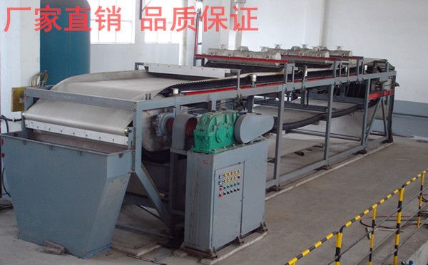 橡胶真空过滤机是一种新型的,迅速脱水,低耗节能的过滤设备,该设备采用了固定真空盒,胶带在真空盒上滑动,真空盒与胶带间构成运动密封的结构型式,以真空负压为推动动力实现固液分离的设备。在结构上,过滤区段沿水平长度方向布置,能连续自动完成过滤、滤饼洗涤、卸渣、滤布等工艺操作,并且母液有与滤饼洗涤洗液可以分段收集。真空带式过滤机是以真空负压为推动力实现固液分离的设备,在结构上,过滤区段沿水平长度方向布置,可以连续完成过滤、洗涤、吸干、滤布等作业。