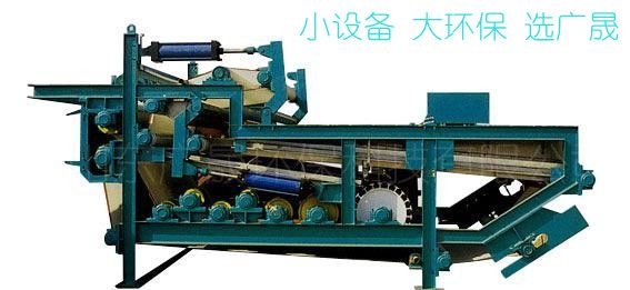 带式浓缩压滤设备主要由驱动装置、传动滚筒、输送带、槽型上托辊、下托辊、机架、清扫器、拉紧装置、改向滚筒、导料槽、重锤张紧装置及电器控制装置等组成。