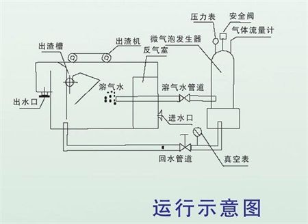 气浮机工作原理可以转化为非溶液解性物质,污水处理的方法之一就是加入混凝剂和絮凝剂使大部分溶解性有机物转达化为非溶解性物质,再将全部或大部分非溶液解性物质(即SS)去除以达到净化污水的目的。