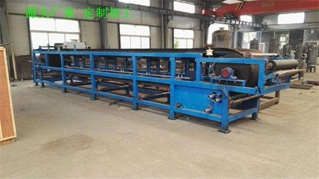 橡胶带式过滤机是一种过滤固液分离设备。该设备采用了固定真空盒,胶带在真空盒上滑动,真空盒与胶带间构成运动密封的结构型式,它能连续自动完成过滤、滤饼洗涤、卸渣、滤布回用等工艺操作,并且母液与滤饼洗涤液可以分段收集。