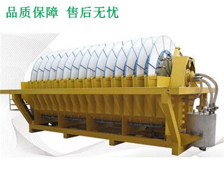 陶瓷圆盘真空过滤机是一种固液分离设备,过滤圆盘由调速电机通过减速器及开式齿轮传动来驱动,使之在装满矿浆的槽体中以一定的转速转动,当过滤圆盘的某一滤扇处在过滤吸附区时,借助于真空泵的作用在过滤介质两侧形成压力差,使固体物料吸附在过滤介质(滤布)上并形成滤饼。