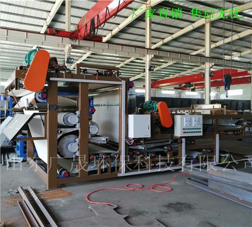 水洗沙包土污泥脱水处理设备是通过两条滤带缠绕在一系列顺序排列、大小不等的辊轮上,利用滤带间的挤压和剪切作用,来脱除料浆中水分的一种压滤设备,具有着能连续作业、自动化程度高、节能、使用维护方便等优点,是一种进行污泥脱水减量化处理的理想设备。