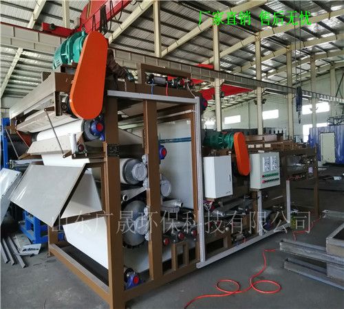 土包沙泥浆脱水设备是通过两条滤带缠绕在一系列顺序排列、大小不等的辊轮上,利用滤带间的挤压和剪切作用,来脱除料浆中水分的一种压滤设备,具有着能连续作业、自动化程度高、节能、使用维护方便等优点,是一种进行污泥脱水减量化处理的理想设备。