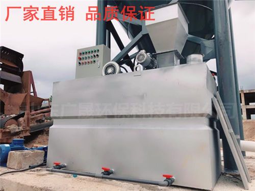 洗沙污水带式压滤机为了解决由于受粘土矿物、泥炭质岩等影响,矿浆粘稠、脱水性能差、压滤产品水分高,生产效率低的问题,改善浓密机跑浑,使后继压滤作业生产效率低,产品水分高,在浓密机中加入絮凝剂强化其脱水效果。