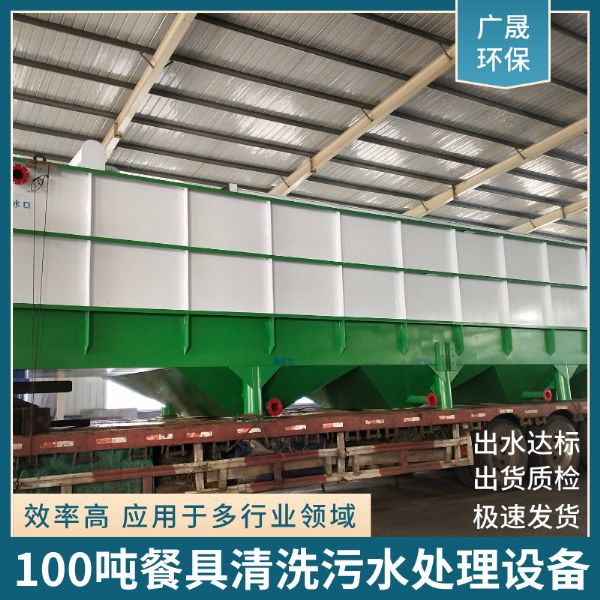 100吨餐具清洗污水处理设备采用生物化学对这类污水进行处理,处理后的污水可达标排放,设备外观采用碳钢防腐材质,使用寿命可长达几十年.