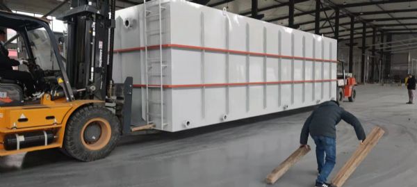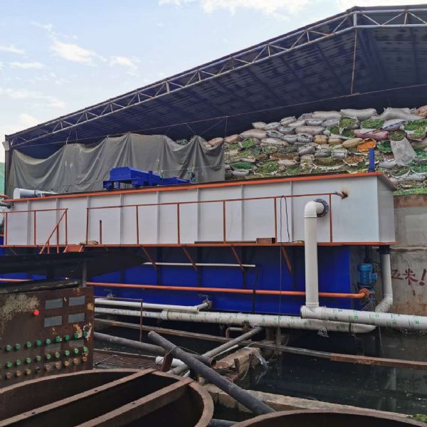 蔬菜清洗污水处理设备寿命长,易挂膜,耐腐蚀. 池底采用旋转混合曝气池,在提高溶解氧迁移率的同时,具有重量轻,不易堵塞,寿命长等优点. 接触池的气水比为12:1左右. (0.5-5 m3/h接触池为二级)