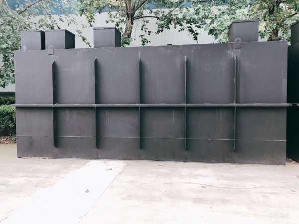 污水处理设备为碳钢防腐结构,设备包含兼氧池,两级接触氧化池,沉淀池,接触消毒池,污泥储存池.接触氧化技术是一种好氧生物膜法工艺,接触氧化池内设有填料,部分微生物以生物膜的形式固着生长于填料表面,部分则是絮状悬浮生长于水中.
