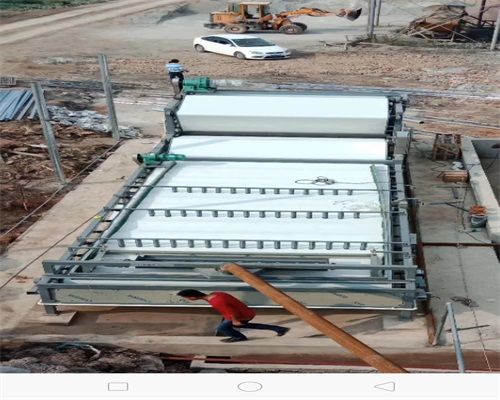 洗沙泥浆带式压滤机由辊压筒、滤带、滤带调偏系统、滤带张紧系统、滤带冲洗系统和滤带驱动系统构成。