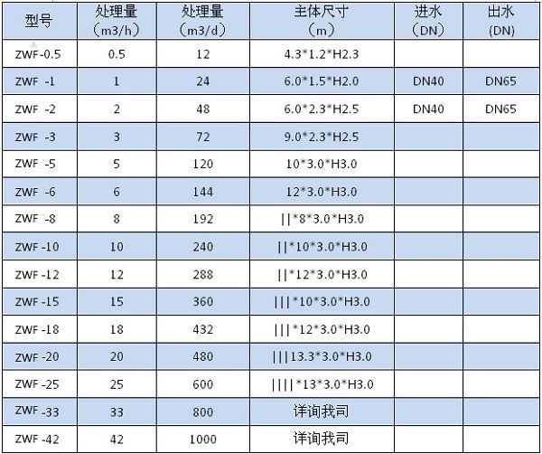 MBR污水处理装置规格从每小时0.5m³至30 m³等,箱体采用碳钢板制做,内、外采用环氧沥青防腐,使用寿命一般可达15年以上。