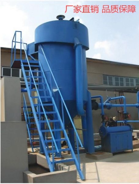 溶气罐来的溶液气水在这里与废水充分混合,突然释放,产生剧烈搅动和涡流,形成直径约为 20-80UM 的微气泡,从而粘附与水中的絮凝体上升,清水彻底分离出来。均布器成锥形结构,连接与释放器上,主要作用是将分离开来的清水和污泥均匀散布于罐体中。出水管均布与罐体下部,并通过一根直立主管连接到罐上部溢出,溢出口设有水位调节手柄,便于调节罐内水位。污泥管安装罐体底部,用于排出沉积于罐底的沉积物,罐体上部设有污泥槽,槽上有刮板,刮板不断转动。连续将上浮的污泥刮到污泥槽内,自流至污泥池里。