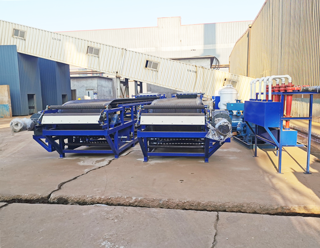 (3)扇形板转出液面时,真空并不立即消失,仍使滤网上的滤层继续脱水,浓度不断增大。例如烟台鑫海矿机的盘式过滤机脱水充分,处理量大,被广泛应用。